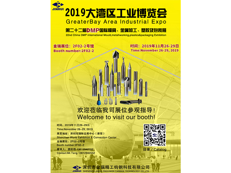 2019.11月26日-29日“2019大灣區(qū)工業(yè)博覽會(huì)”,深圳金瑞精工鎢鋼科技有限公司2F02-2館,歡迎蒞臨我司展位參觀(guān)指導(dǎo)